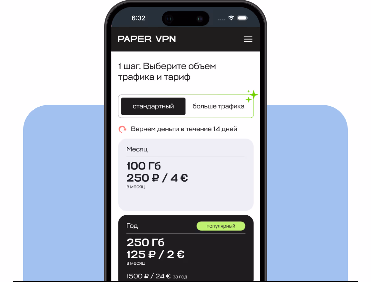 Если вы приобрели Paper VPN, но столкнулись с проблемами в работе сервиса, напишите нам в телеграм-бот или на support@papervpn.io. Мы решим вопрос или вернем вам деньги.